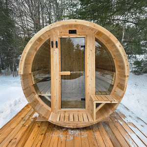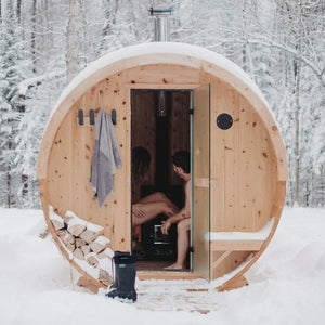 +1 (888) 61-MÖKKI (66554)Découvrez le sauna baril N62°, conçu pour offrir une expérience de sauna exceptionnelle grâce à des matériaux de première qualité et une fabrication minutieuse. Fabriqué en cèdre blanc de l'est, notre sauna est naturellement résistant à l'humidité et aux insectes, garantissant durabilité et beauté. Provenant directement du Québec, notre cèdre blanc assure une qualité exceptionnelle pour votre bien-être. Nos saunas peuvent être chauffés avec un poêle électrique ou à bois, selon vos préférences. Le poêle électrique offre une utilisation simple, tandis que le poêle à bois procure une expérience rustique et envoutante. Pour assurer votre satisfaction, nous offrons une garantie de deux ans sur l'assemblage.